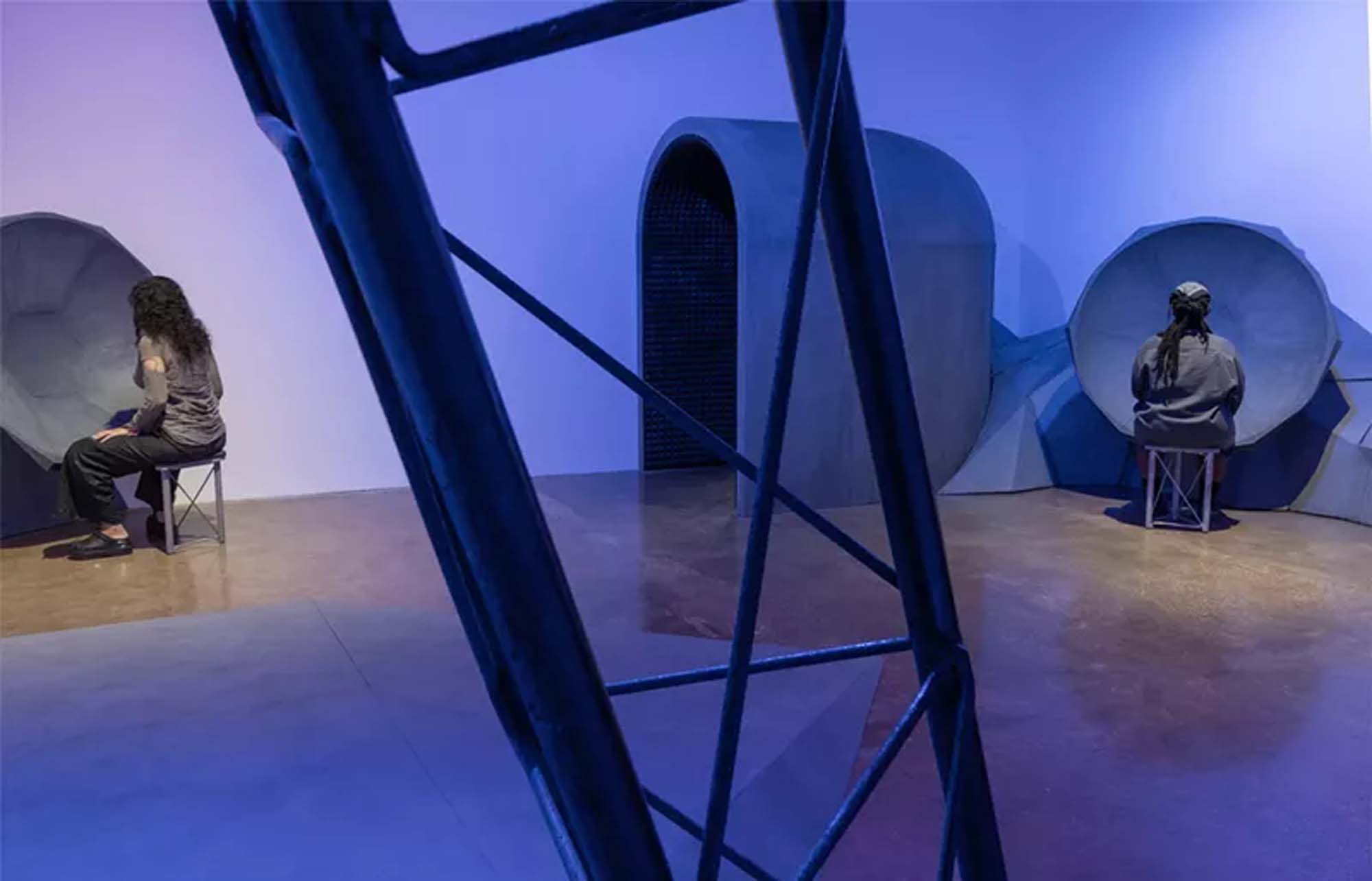 Locust Projects presents Drawn Breath, Exhaled Frequencies, a transatlantic conversation of whispered resistance and ecological anxiety, framed through a reimagined sonic architecture in the Project Room. Conceived by artist Michael Webster in collaboration with writers Arsimmer McCoy and Selina Nwulu, the exhibition adopts the early 20th-century technology of sound mirrors, once engineered to detect the threat of incoming war planes, as vessels for spoken voice.